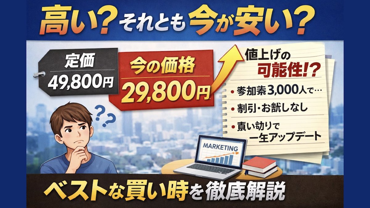 教材が完成形に近づいたタイミングや、参加者が一定数に達した段階でこの価格に戻す可能性があると発信されています。